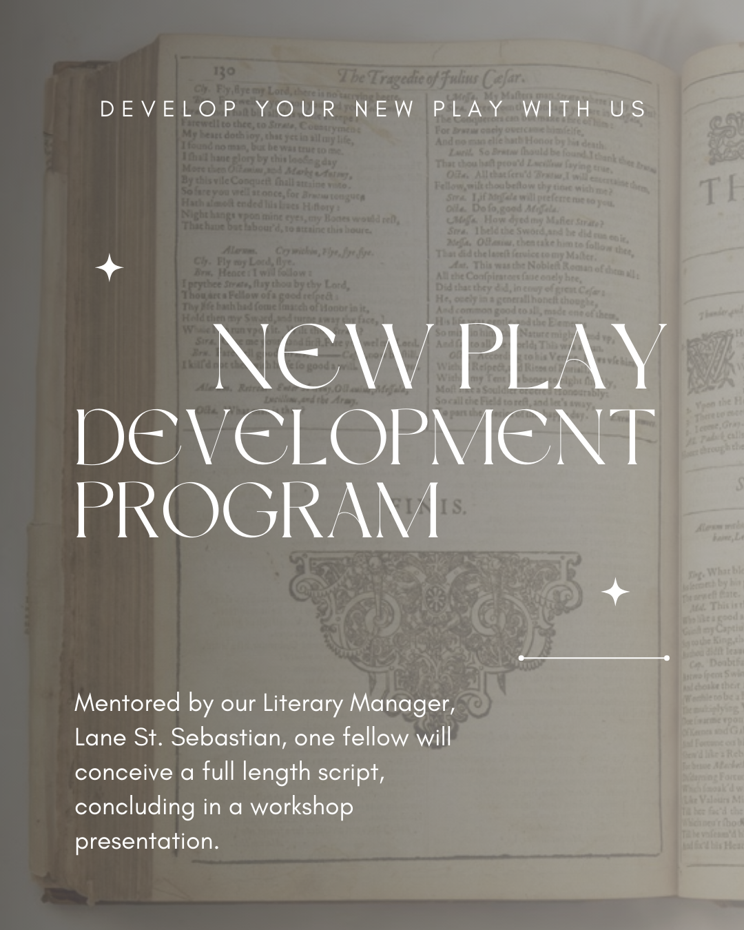 We encourage all playwrights with a passion for classical works to submit an application. We are particularly interested in submissions that break the boundaries of theatre and classics, creating exciting possibilities in how we consider ancient stories in our modern context. The selected playwright will work alongside Lane St. Sebastian, Theatre Bacchant’s Literary Manager, exploring the intersection of myth, history, and modern narrative to create something exciting, bold, and impactful.
